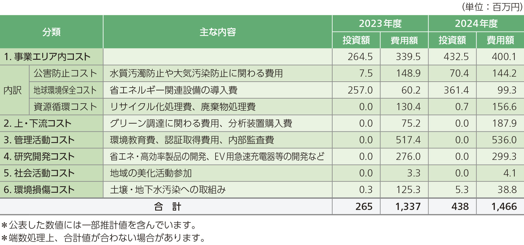 新電元グループでは、環境経営をより効率的に推進するために環境会計を導入し、環境保全コストとそれに伴う経済効果(金額)や物量効果を定量的に把握し、公表しています。環境会計算出方法に当たっては、環境省環境会計ガイドラインを参考にして独自の算出基準を制定し、それに則り実施しています。