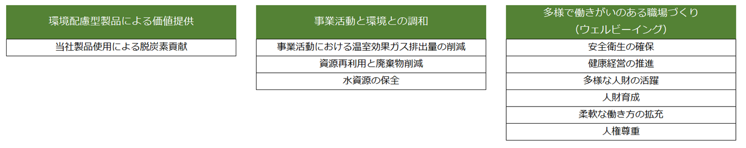 これまで取り組んできたESG(環境・社会・ガバナンス)課題について、第17次中期経営方針を踏まえ、サステナビリティの視点から改めて課題の整理・見直しを行いました。
