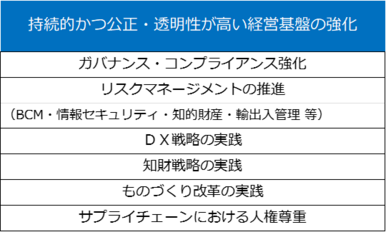 持続的かつ公正・透明性が高い経営基盤の強化 |