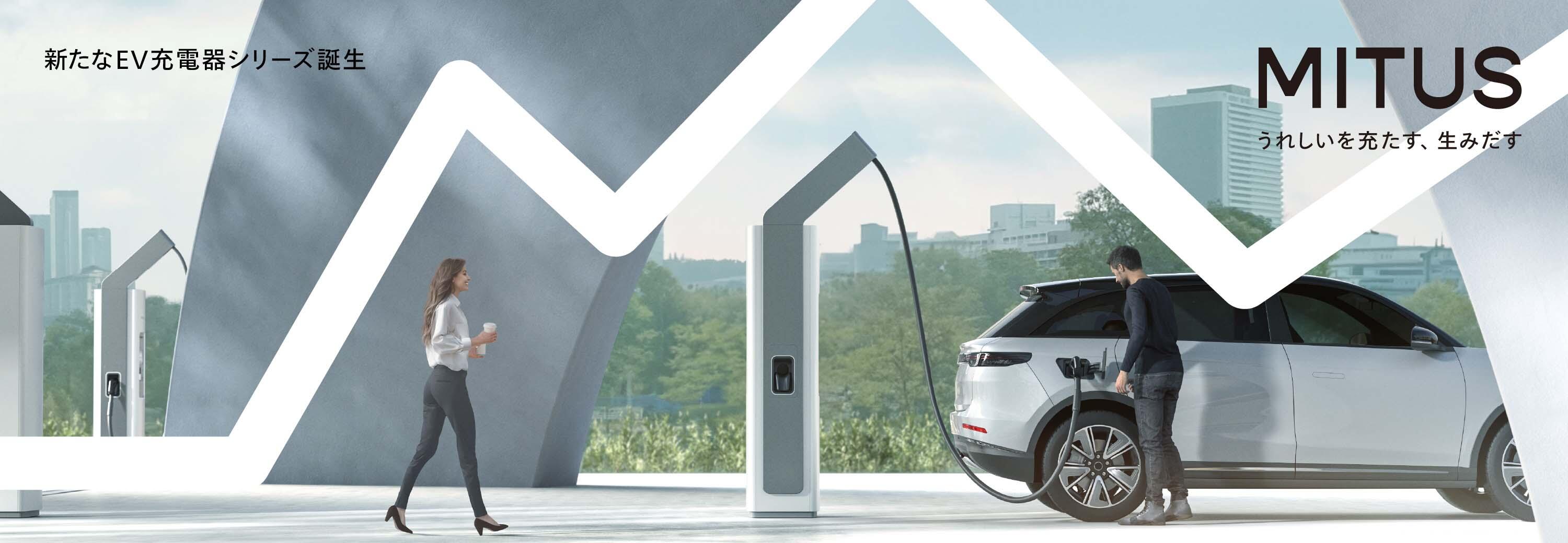 EV充電器として必要な性能は当然に充足させながら、より多くのモビリティ人口が、積極的にEVに乗りたくなる、EVと暮らす毎日がより楽しくなるような「うれしさ」を生みだすEV充電器シリーズとして「MITUS(ミタス)」を展開。EVに乗る人が快適に利用できる標準的な充電性能や技術を搭載し、適切な場所に提案していくことで、キロワットや時間をあまり意識せずに利用できる環境づくりを目指します。