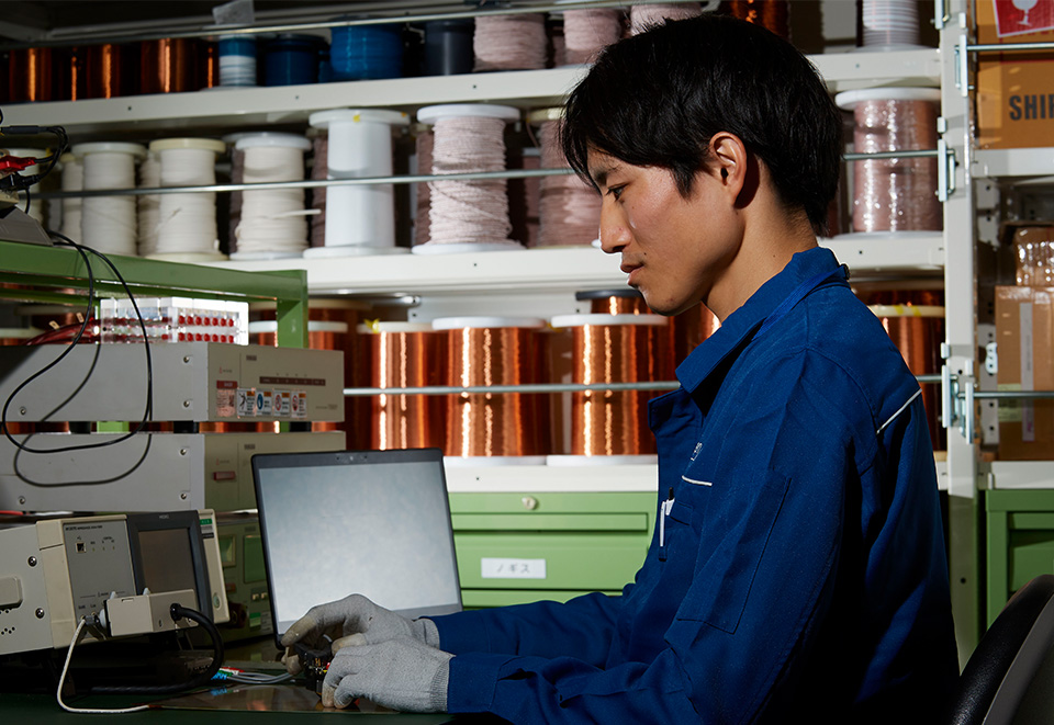 実験室での作業では、試作品の作成・検証実験をしています。わからないことに対して悩むことも大事にしていますが、先輩社員に聞いて早めに解決すること、ミスを減らすように心がけています。